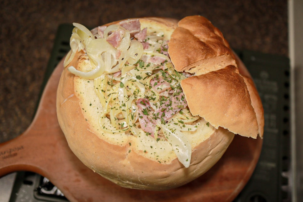 Cómo Hacer Pasta Pané: Receta de Pasta Cremosa en Bol de Pan, Nata Fresca, Leche, Bacon, Cebolla