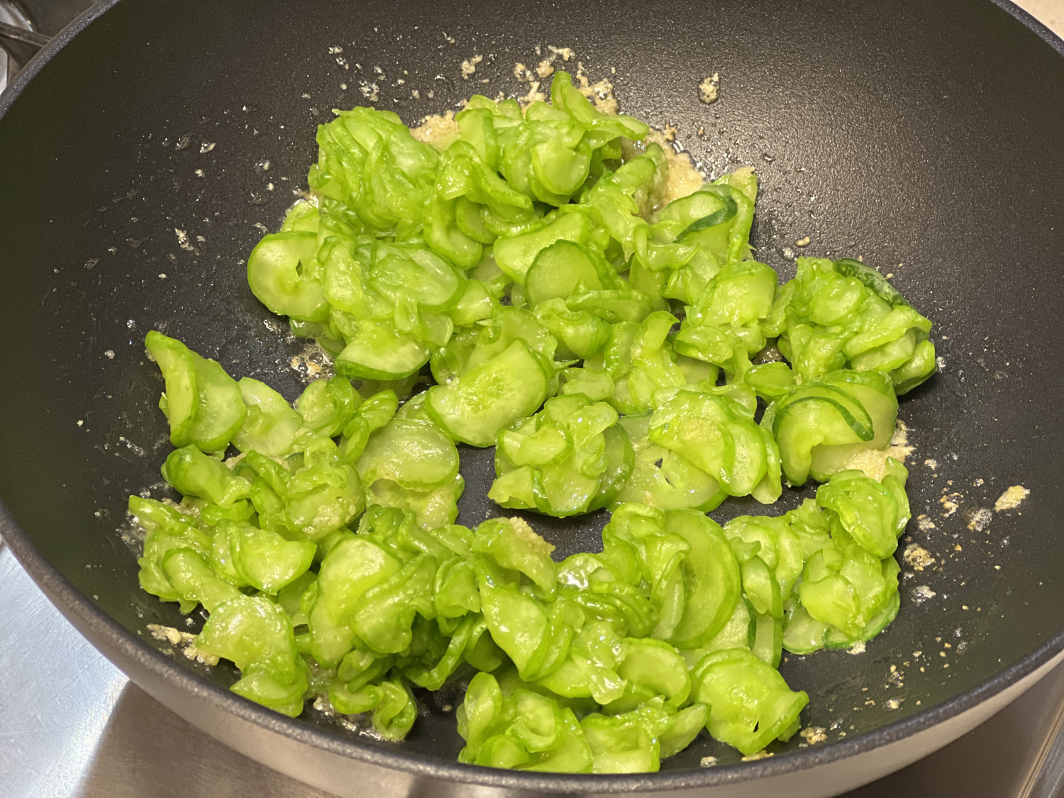 Ingredientes para Pepino Salteado- 3 pepinos (de tamaño mediano)