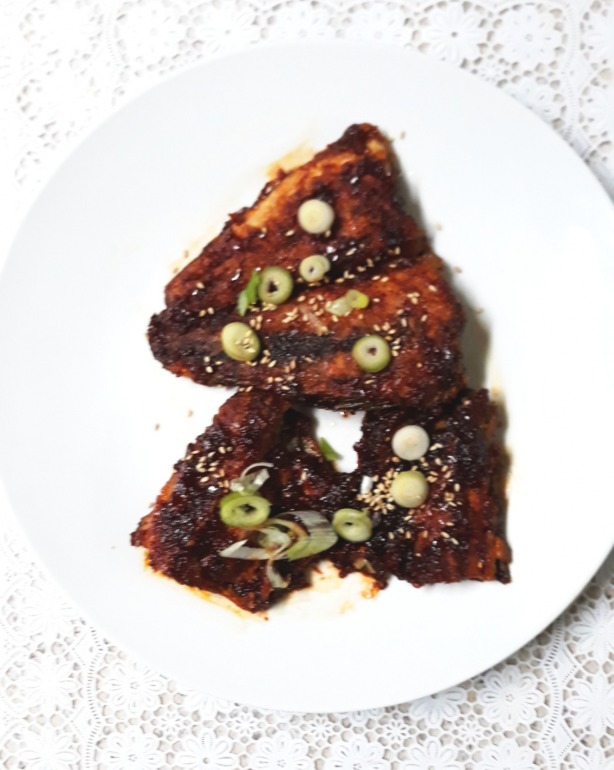 Esta receta me trae recuerdos de mi infancia, cuando mi madre solía cocinar Raya Negro (llamado ‘Imyeon-su’ en coreano), un pescado que me encantaba. Aunque hoy en día me cuesta replicar ese sabor nostálgico exacto, he encontrado una forma deliciosa de revivirlo usando mi propia salsa picante versátil. Este plato ofrece una deliciosa combinación de exterior crujiente y carne tierna y sabrosa, lo que lo convierte en un acompañamiento perfecto para el arroz o como un sabroso aperitivo.
