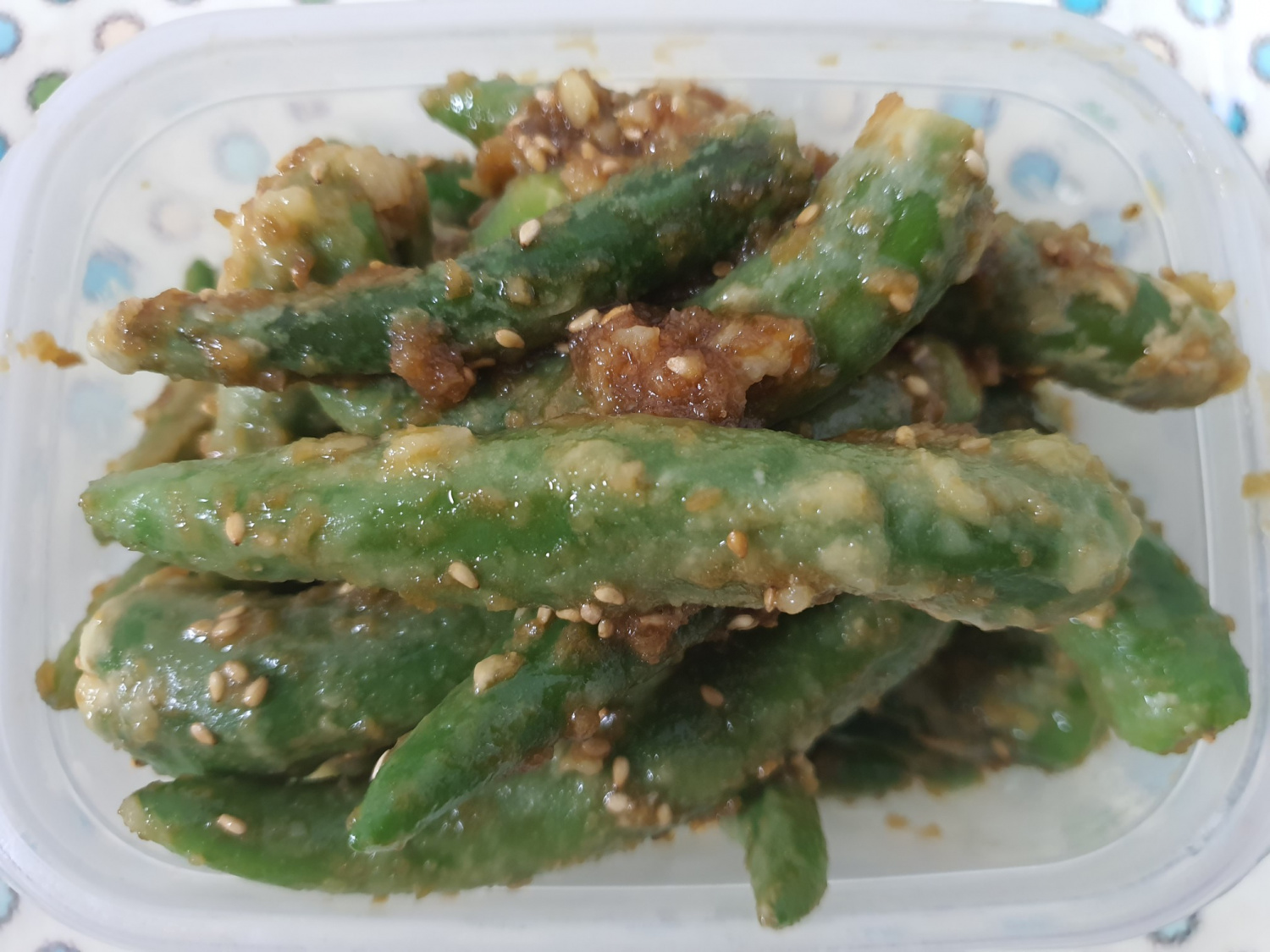 ¡Y aquí tienes tus pimientos al vapor crujientes y deliciosos! Se sirven maravillosamente inmediatamente, o puedes enfriarlos en el refrigerador para una guarnición refrescante. ¡Disfruta de este banchan (guarnición coreana) saludable y sabroso!
