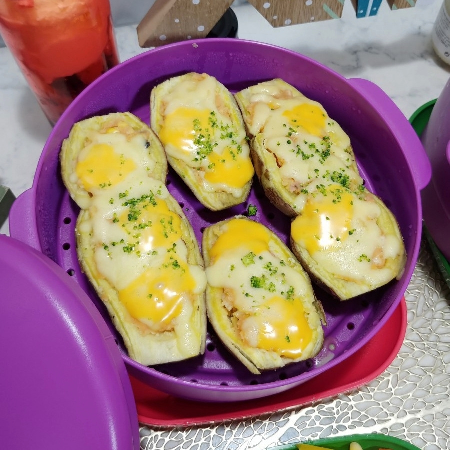 Finalmente, cocine al vapor las pizzas de batata en la vaporera hasta que el queso se derrita. ¡Su deliciosa pizza de batata dulce estará completa! Disfrútela caliente, con el queso estirándose maravillosamente.