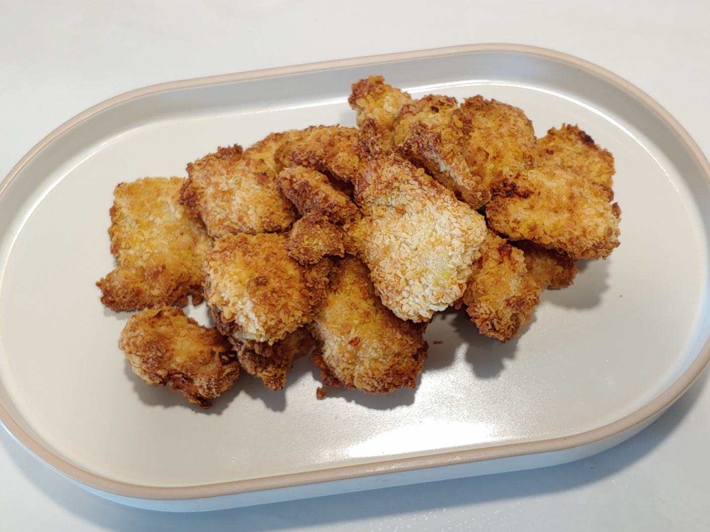 Precalienta tu freidora de aire. (Si no es necesario precalentar tu modelo, puedes omitir este paso). Coloca las piezas de pollo rebozadas en la cesta de la freidora de aire en una sola capa, asegurándote de que no se superpongan ni se toquen entre sí. Rocía ligeramente el pollo con aceite de cocina o aceite de oliva para que quede más crujiente. Cocina a 180°C (350°F) durante 10 minutos.