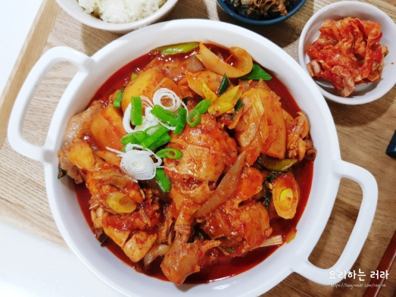 ¡Este Dakbokkeumtang realmente hace honor a la frase ‘el caldo es increíble’! La armonía del caldo picante, el tierno pollo y las suaves patatas es simplemente divina. ¡Disfruta de tu deliciosa comida casera!