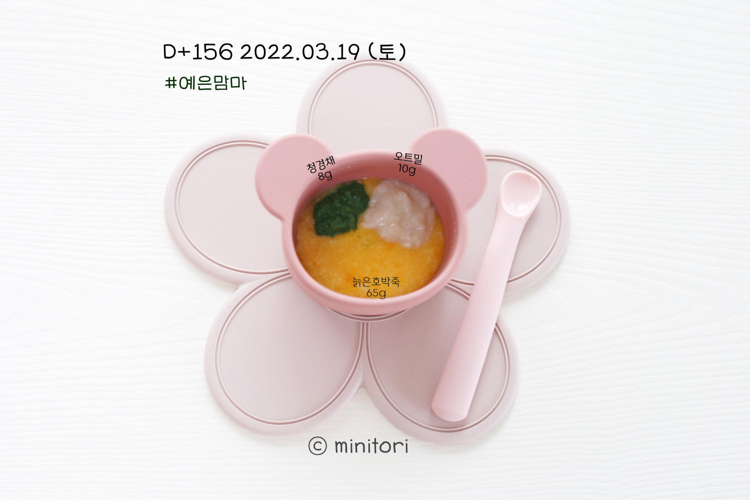 Menú de Puré con Topping Temprano de Ye Eun Mom para Bebé de 5 Meses: Cómo Usar Puré de Calabaza Dulce, Bok Choy y Cubos de Avena; Haciendo Cubos de Topping de Avena
