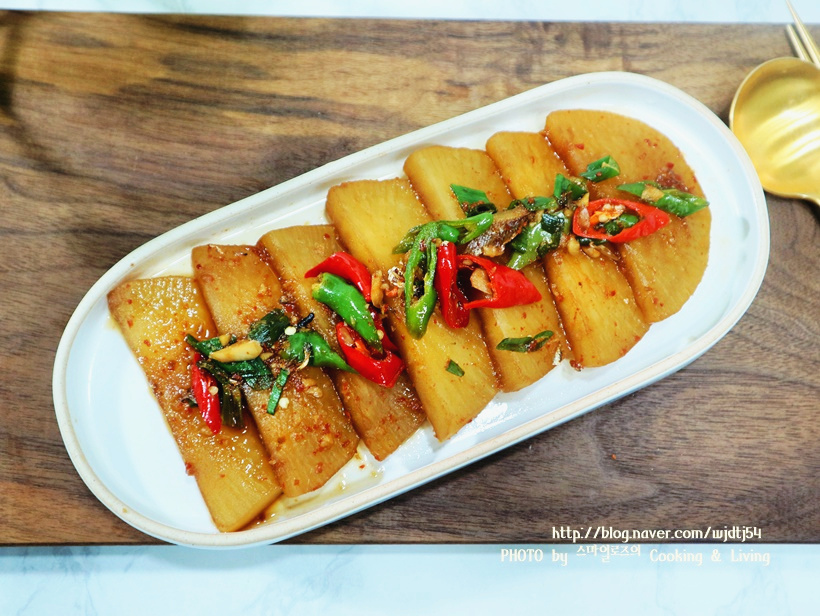 Añadir un toque de gochugaru para el picante y azúcar moreno para el brillo y el dulzor da como resultado un plato bellamente coloreado y apetitoso, ¿verdad? Como dice el refrán, la comida atractiva sabe mejor, y este rábano estofado con anchoas cumple tanto en sabor como en apariencia.