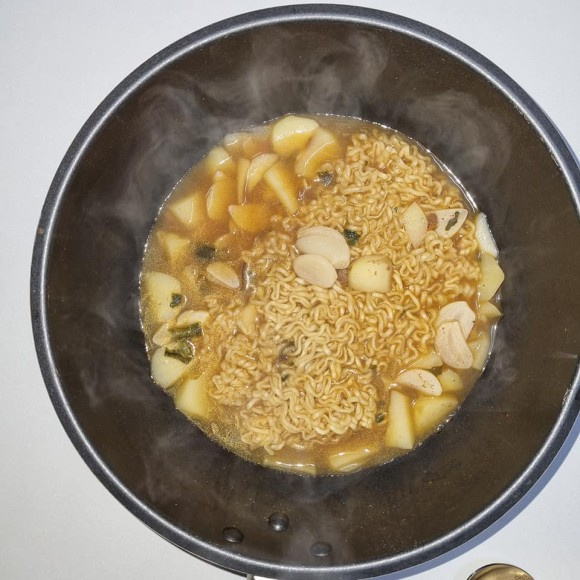 Aquí les presento un ramen especial que preparé rápidamente para un almuerzo tardío. Es un ramen delicioso infusionado con los sabores vibrantes de las papas y el aromático ajo, ofreciendo un perfil maravillosamente ácido y picante. Perfecto para cuando necesitas una comida rápida pero con un sabor único.