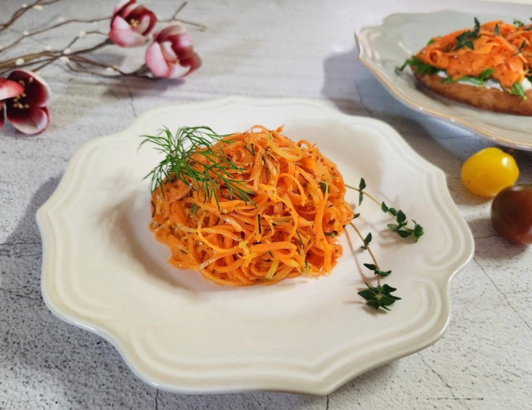 Este rape de zanahoria es una deliciosa combinación de sabores dulces y ácidos, realzada por la presencia aromática del eneldo fresco. Las zanahorias, un superalimento rico en betacaroteno, a menudo son pasadas por alto en nuestra dieta. Esta receta ofrece una forma sabrosa de incorporarlas: cree un vibrante rape de zanahoria perfecto para sándwiches, gimbap, como guarnición o como aderezo para ensaladas. ¡Disfrute de este manjar versátil y saludable!