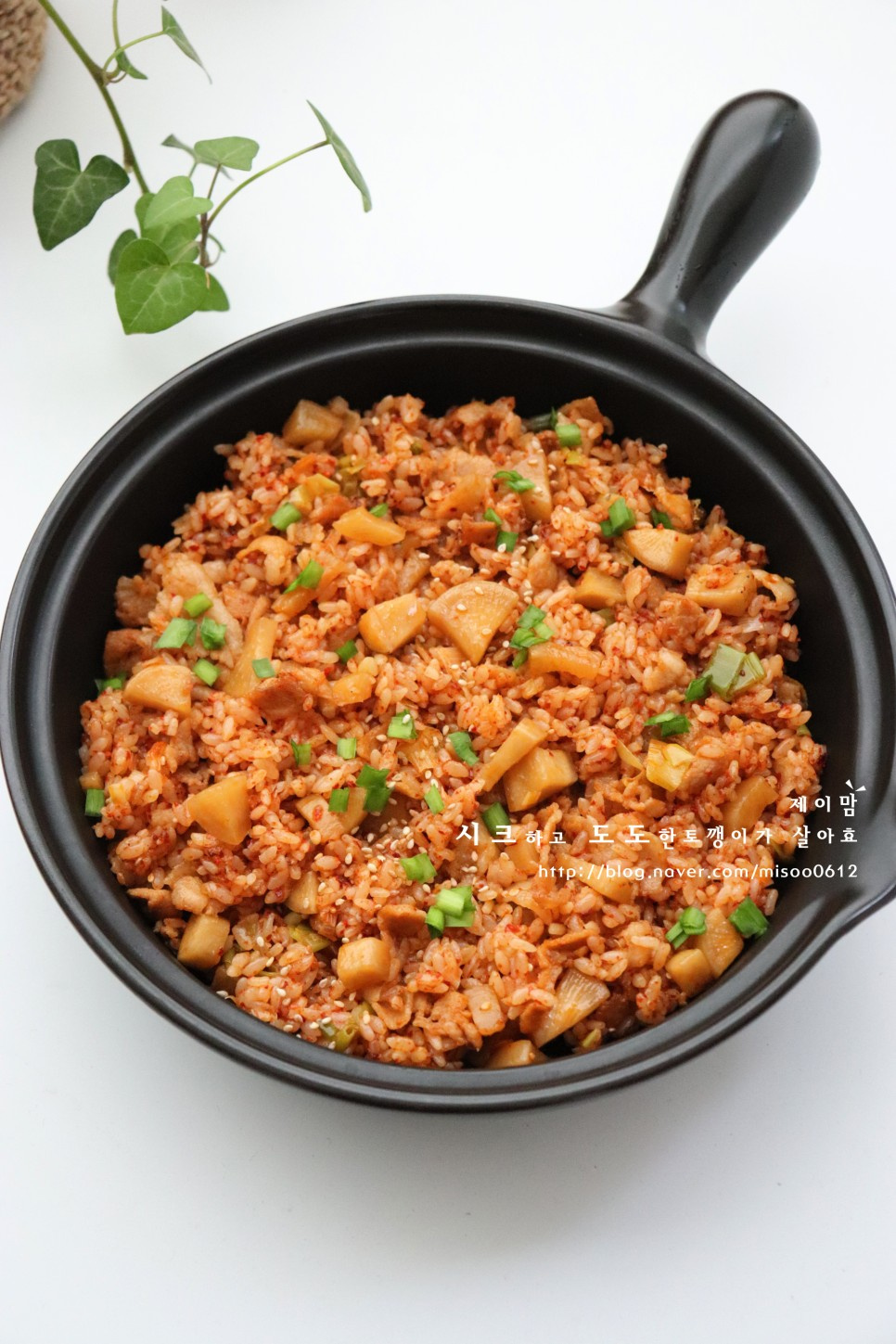 ¡Sencillo pero increíblemente delicioso! Te presentamos un arroz frito con panceta de cerdo y kimchi que constituye una comida muy satisfactoria. La crocantez del kimchi combinada con la rica y sabrosa panceta de cerdo crea un sabor inolvidable.