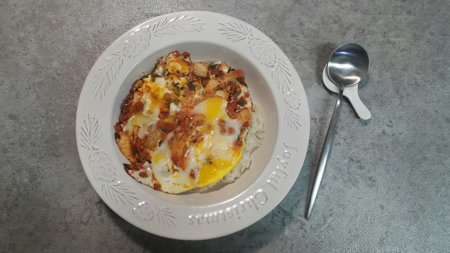 Receta de Bowl de Arroz Súper Fácil con Spam, Kimchi y Huevo