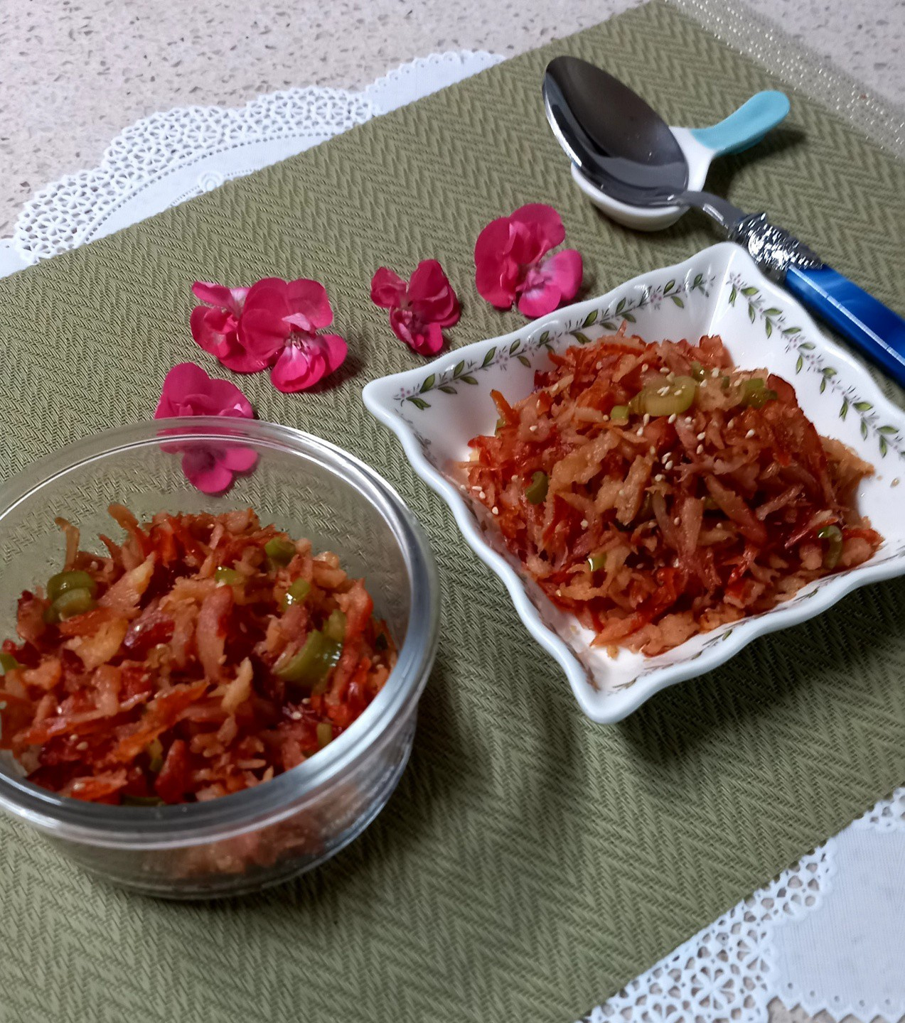 Ingredientes Principales- 120g de calamares secos deshebrados (cham jinmichae)