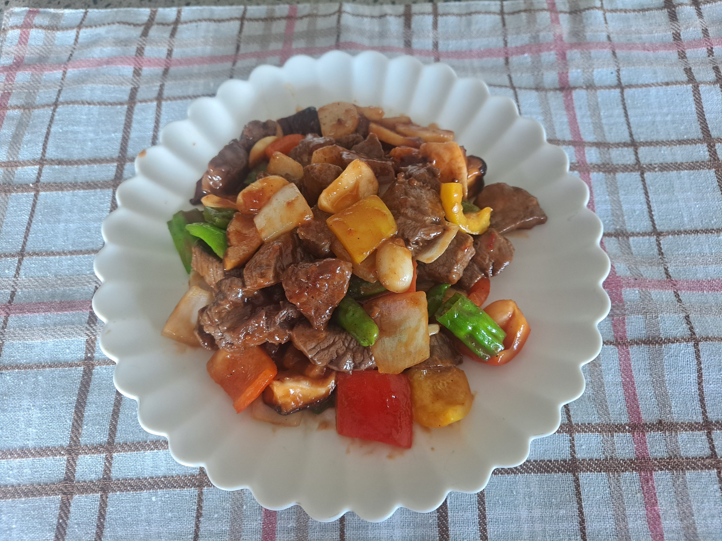 Tan pronto como las verduras estén cubiertas con la salsa y cocidas a tu gusto, retira inmediatamente la sartén del fuego. Transfiere el filete de ternera en cubos a un plato de servir de inmediato. Dejar el plato en la sartén caliente puede hacer que las verduras liberen humedad en exceso, haciendo que la salsa se vuelva aguada y potencialmente cocinando demasiado la carne. ¡Sirve inmediatamente para disfrutar del mejor sabor y textura!