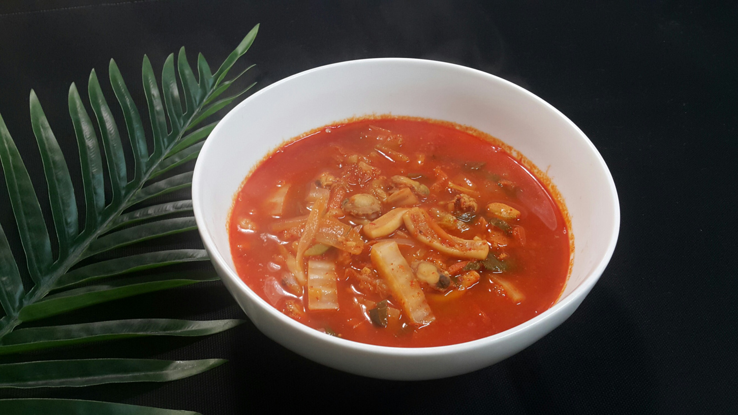 ¡Explosión de sabores del mar! Esta sopa Jjamppong, con mariscos frescos y verduras crujientes, ofrece un sabor deliciosamente picante y refrescante, perfecta para disfrutar en casa. Es una opción excelente como aperitivo con bebidas o como una comida reconfortante con arroz.