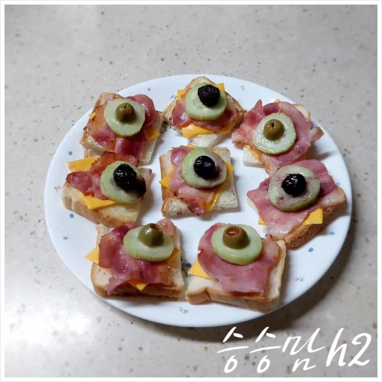 Primero, retira los bordes del pan de molde y corta cada rebanada en 4 cuadrados pequeños para que sean bocados. Tuesta estas piezas de pan en un horno o freidora de aire a unos 180°C (350°F) durante 3-4 minutos, hasta que estén doradas y ligeramente crujientes. Esto les dará una textura deliciosa.