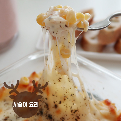 Extiende la mezcla de maíz de manera uniforme en el recipiente, luego cúbrelo generosamente con 100g de queso mozzarella rallado o queso para pizza. El queso se derretirá formando una deliciosa y pegajosa capa.