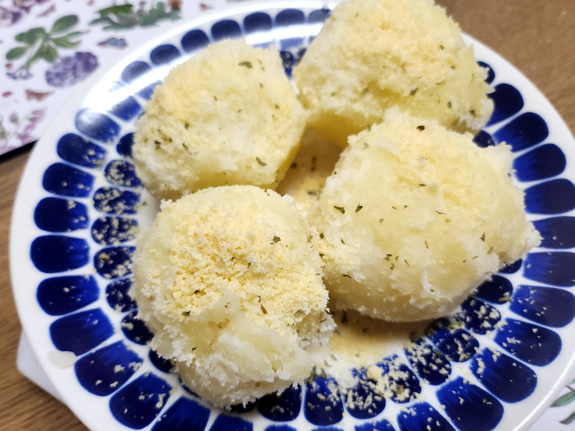 ¡Es la temporada de las deliciosas papas nuevas y lucen maravillosamente esponjosas! Perfectamente sazonadas con una encantadora textura polvorienta, blanca y lechosa. Estas papas son lo suficientemente satisfactorias como bocadillo o como una parte sustanciosa de una comida. ¡Disfruta de su simple y saludable bondad!
