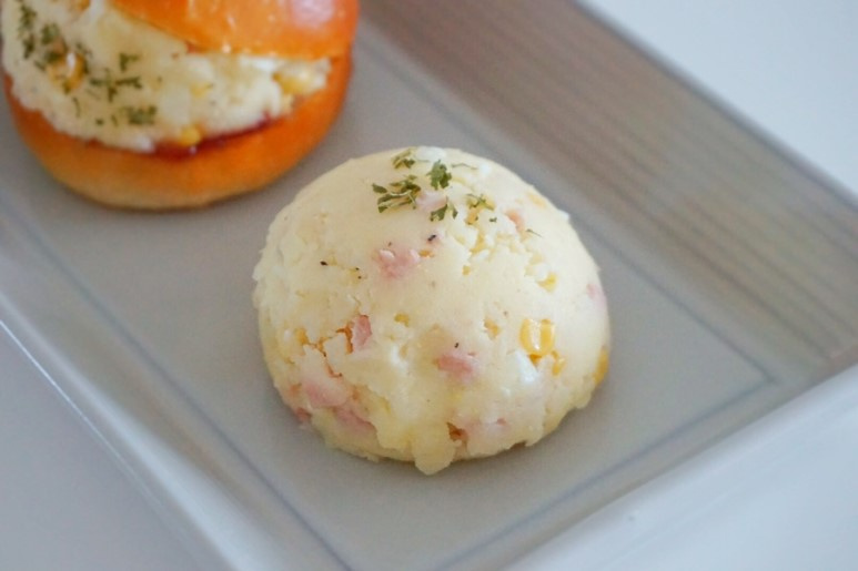 En el bol con las patatas y los huevos machacados, añade el maíz dulce escurrido y el jamón finamente picado. Para eliminar cualquier olor no deseado del jamón, puedes escaldarlo brevemente en agua hirviendo o microondas durante unos 30 segundos. Ahora, agrega 5 cucharadas de mayonesa y sazona con sal y pimienta al gusto. Mezcla todos los ingredientes suavemente hasta que estén bien combinados con la mayonesa. ¡Tu deliciosa ensalada de patatas está lista!