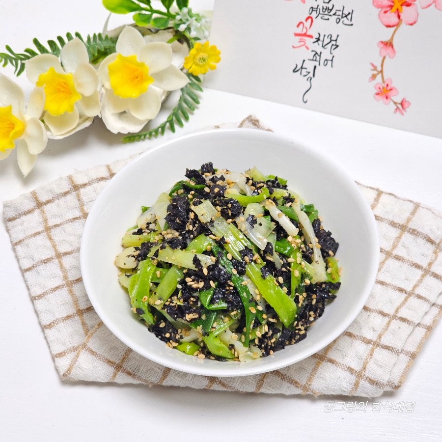 Prepare este sabroso Kim Muchim de Cebolleta con una textura crujiente y deliciosa, de forma sencilla utilizando el microondas. ¡Es perfecto como acompañamiento para el arroz o como un aperitivo encantador!