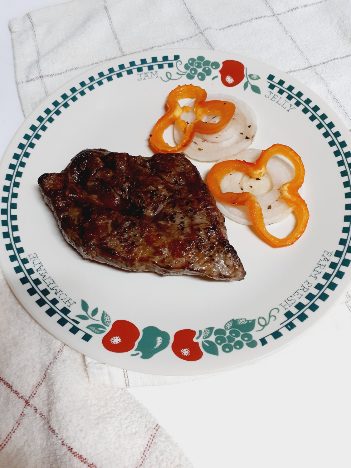 Una vez que el filete haya logrado un buen sellado, transfiera las rodajas gruesas de cebolla y pimiento morrón a la sartén o a una plancha junto con el filete para que se cocinen. Asar las verduras con el filete realza el sabor del filete y resalta la dulzura natural de las verduras.