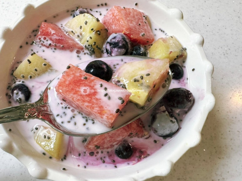 Dispón todos los ingredientes preparados de forma atractiva en un bol bonito. Una vez que la sandía, el kiwi y los arándanos estén combinados y mezclados con el yogur, tu ‘Ponche de Sandía con Yogur Bebible de Fresa’ visualmente impresionante estará completo. Remueve suavemente todo para obtener los mejores resultados.
