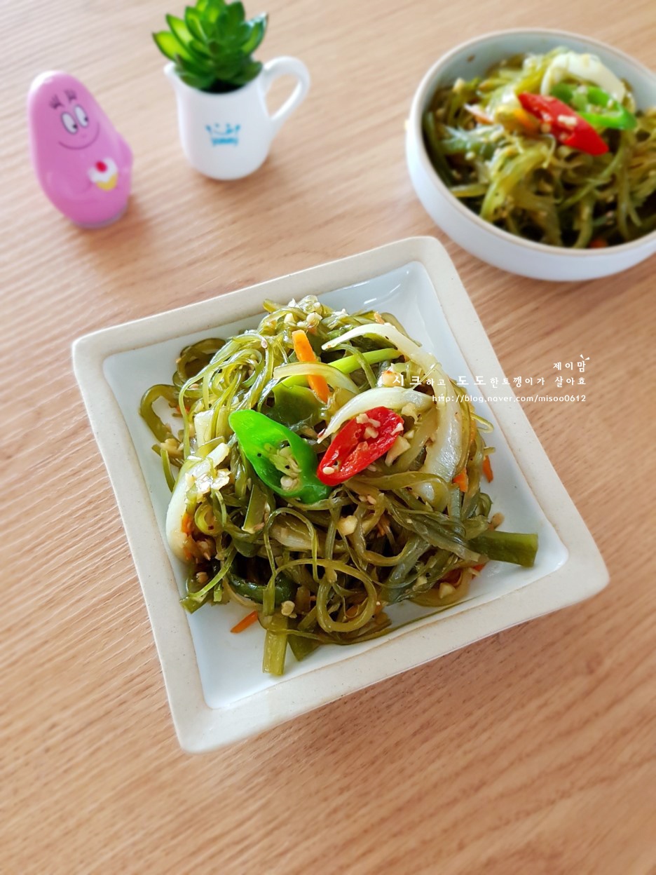 Revuelto de Tallos de Algas Marinas (Miyok Jjuri Bokkeum) - Receta Dorada