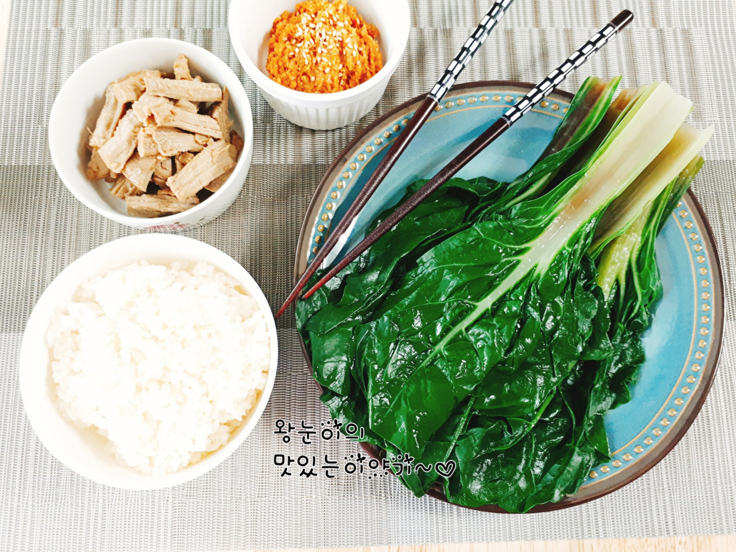 ¡Tus rollitos de acelga crujientes y deliciosos están listos! Simplemente coloca una porción de arroz cocido sobre una hoja de acelga fresca y enróllala para una comida satisfactoria. Para un toque extra de sabor, acompaña estos rollitos con tus guarniciones favoritas, como carne estofada o, para un sabor complementario fantástico, prueba la receta de ‘Ssamjang de Tofu y Atún’ que se encuentra en @6911836. (Consulta @6911836 para la receta de Ssamjang de Tofu y Atún).