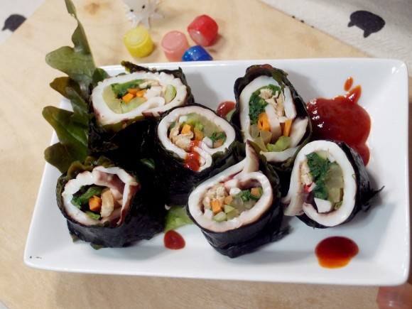 Rollitos de Algas Marinas (Gompi) y Calamares Frescos: Una Combinación Deliciosa y Texturizada