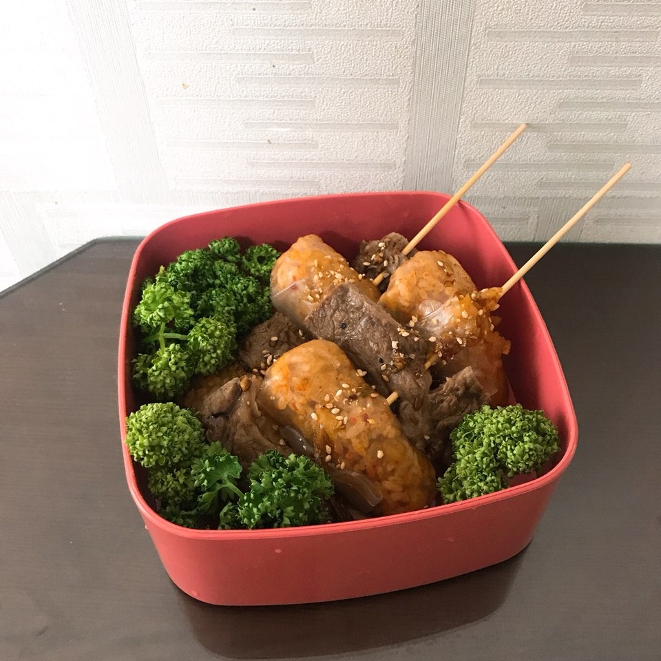 Dispongan los rollitos de arroz ensartados terminados de manera atractiva en su lonchera. Rocíen la salsa de carne de res preparada sobre las brochetas y espolvoreen con semillas de sésamo tostadas para un toque final. ¡Sus deliciosos y atractivos Rollitos de Arroz Ensartados estarán listos para hacer que su salida especial sea aún más memorable!