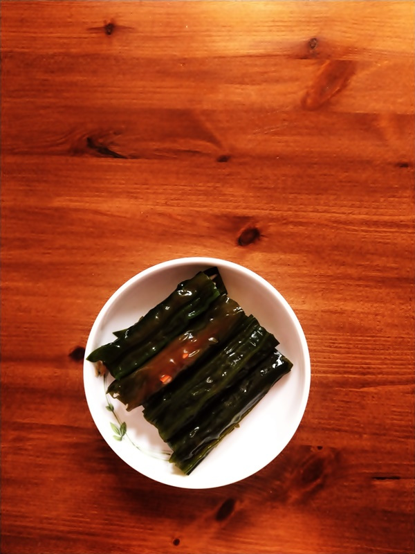 Primero, es importante limpiar bien el Gompi (alga cuerno de alce). Para eliminar la sal y las impurezas de su superficie, frótalo suavemente con las manos mientras lo enjuagas bajo el agua corriente 3-4 veces. Mientras lavas el Gompi, prepara una olla con agua para escaldarlo.