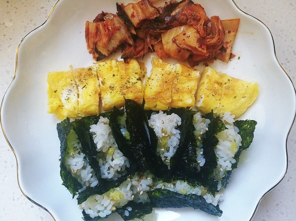 Estos rollitos de sushi de alga marina sazonada son aún más deliciosos cuando se sirven junto con kimchi salteado o una tortilla enrollada esponjosa. ¡Siéntete libre de personalizar tus acompañamientos según tu gusto personal!