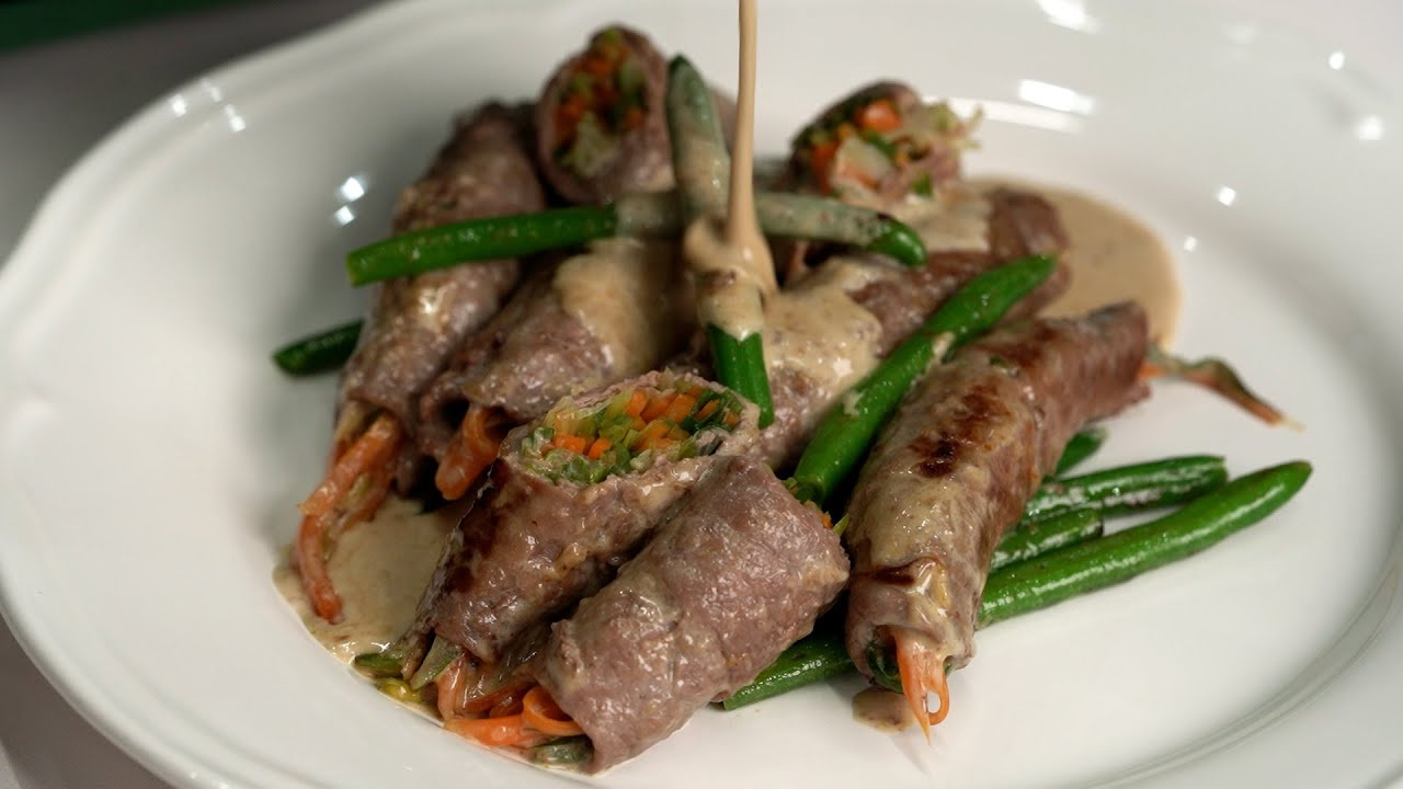 Un Plato Excepcional que Vale la Pena Preparar: Rollitos de Ternera con Crema de Cebolleta y Zanahoria
