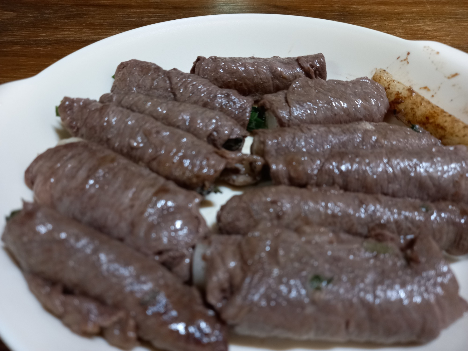 Presione suavemente la ternera cortada finamente con papel de cocina para eliminar cualquier resto de sangre. Este paso ayuda a eliminar cualquier olor fuerte, asegurando un sabor más limpio y delicioso para sus rollitos de ternera.