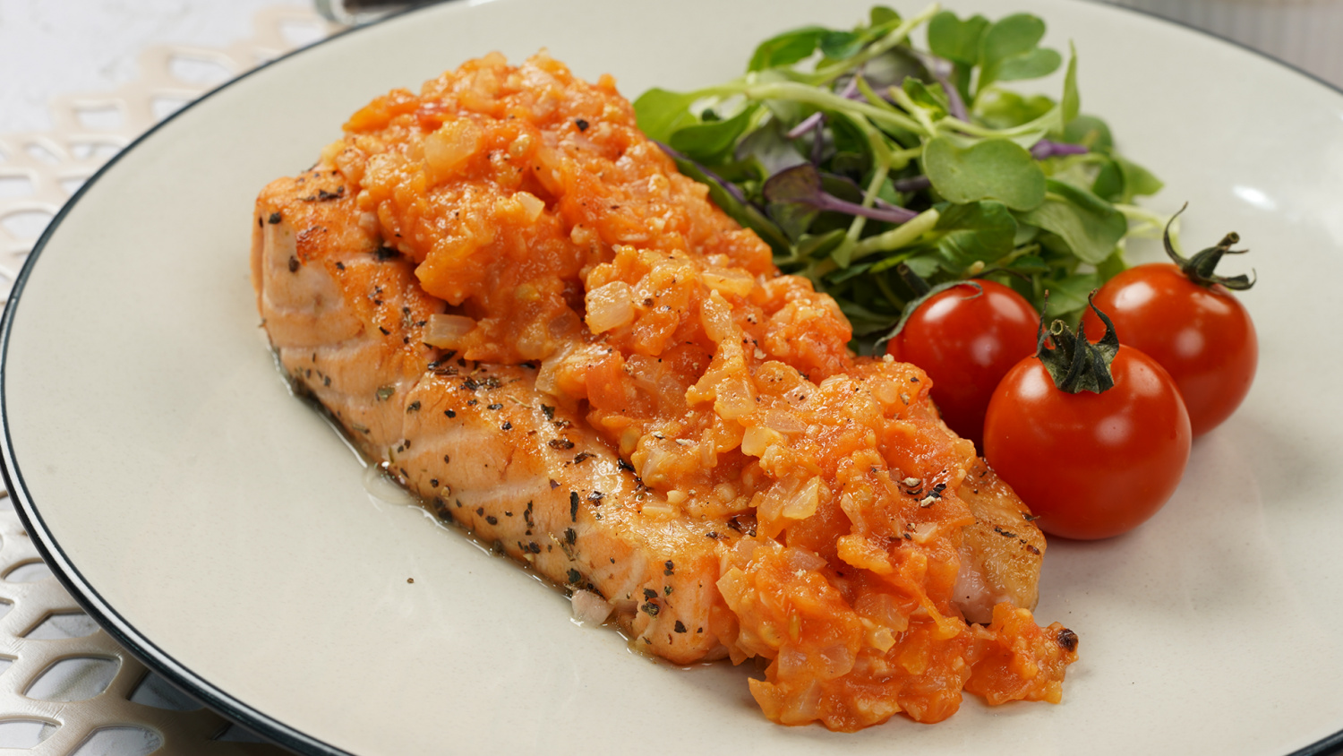 Salmón a la Plancha con Salsa Fresca de Tomate