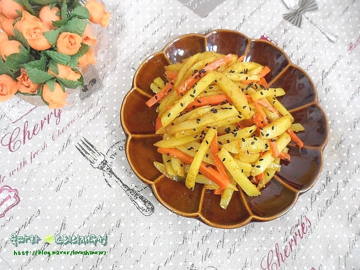 ¡Solución para cuando no tienes guarniciones! Presentamos la receta de ‘Salteado de Patatas con Curry’ que roba el protagonismo del arroz. Es una guarnición sencilla y rápida que utiliza patatas, un ingrediente básico. Hemos mejorado el sabor añadiendo curry en polvo al salteado de patatas, ¡haciéndolo increíblemente adictivo! El sutil aroma a curry es tan seductor que es un plato de acompañamiento maravillosamente encantador al que seguirás recurriendo, perfecto con arroz o como un simple snack. ¿Lo preparamos juntos ahora mismo?
