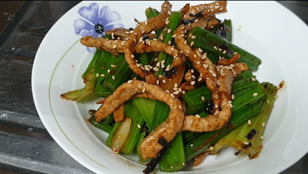 Les presentamos un delicioso acompañamiento perfecto para el arroz: un salteado hecho con apio fresco, ligeramente escaldado y combinado con sabrosas tiras de cerdo. Este plato hará que cualquier comida sea especial, incluso en los días ordinarios.