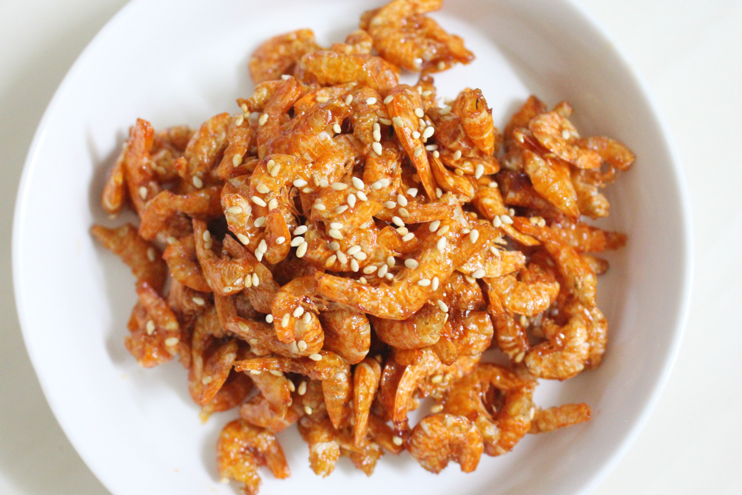Finalmente, traslada los camarones secos salteados terminados a un plato bonito. Espolvorea una generosa cantidad de semillas de sésamo por encima para un sabor extra a nuez, ¡y tu delicioso acompañamiento estará completo! ¿Verdad que es maravillosamente fácil? Disfrútalo como un acompañamiento perfecto para el arroz o como adición a tu fiambrera (bento box).