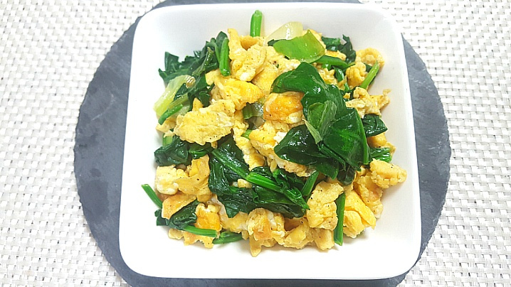 Los huevos revueltos blandos y las espinacas fragantes salteadas en aceite de cebolleta crean una deliciosa armonía de sabores. Está delicioso por sí solo, pero si añades un poco de gochujang (pasta de chile coreana) y lo mezclas con arroz, ¡se convierte en una comida estilo bibimbap increíblemente sabrosa!