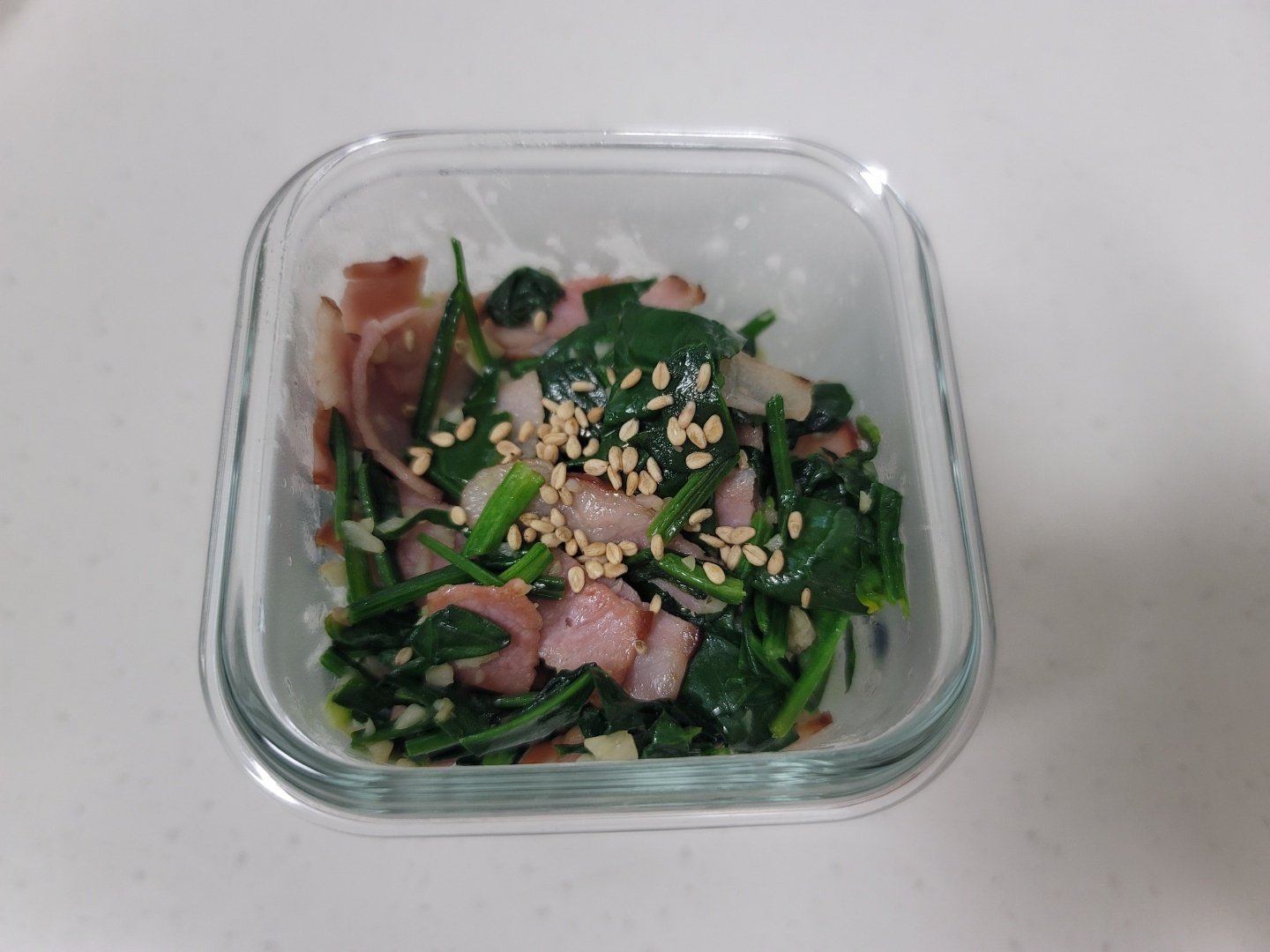 Una vez que el tocino esté parcialmente cocido, agrega las espinacas preparadas a la sartén. Saltéalas juntas. Las espinacas se marchitan rápidamente, por lo que es importante no cocinarlas en exceso. Saltea solo hasta que las espinacas estén tiernas, lo que solo debería tomar aproximadamente 1-2 minutos. Justo antes de apagar el fuego, espolvorea 0.5 cucharada de semillas de sésamo tostadas para darle el toque final. ¡Tu delicioso salteado de espinacas y tocino está listo!