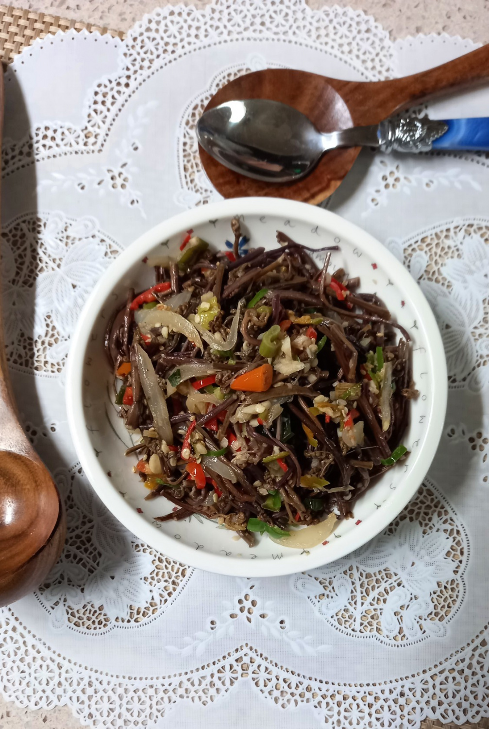 Transfiera el helecho salteado perfectamente preparado a un plato de servir. ¡Disfrute de esta deliciosa guarnición con un tazón de arroz caliente!