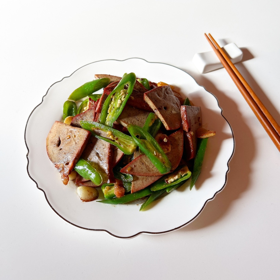 ¡Disfrute en casa de un salteado de hígado de cerdo con chiles, elástico y delicioso, que es completamente diferente de la textura seca del hígado de cerdo hervido que se encuentra a menudo en las tiendas de snacks! Es un plato perfecto para festividades, un acompañamiento satisfactorio para bebidas o un aperitivo impresionante para invitados.
