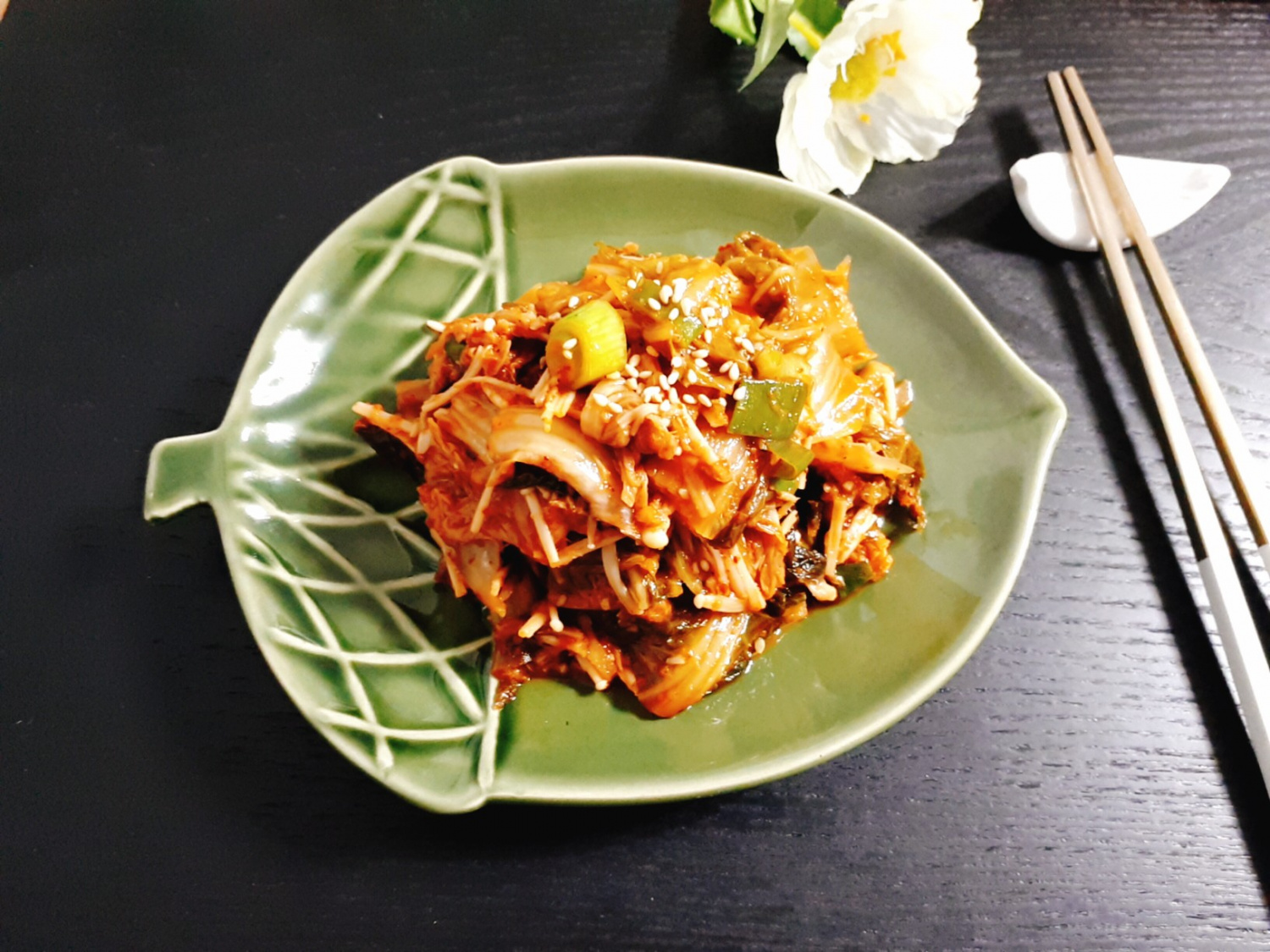 Hemos creado una versión única del clásico salteado de kimchi que combina maravillosamente con cualquier comida. Este plato es universalmente amado por su delicioso perfil de sabor.
