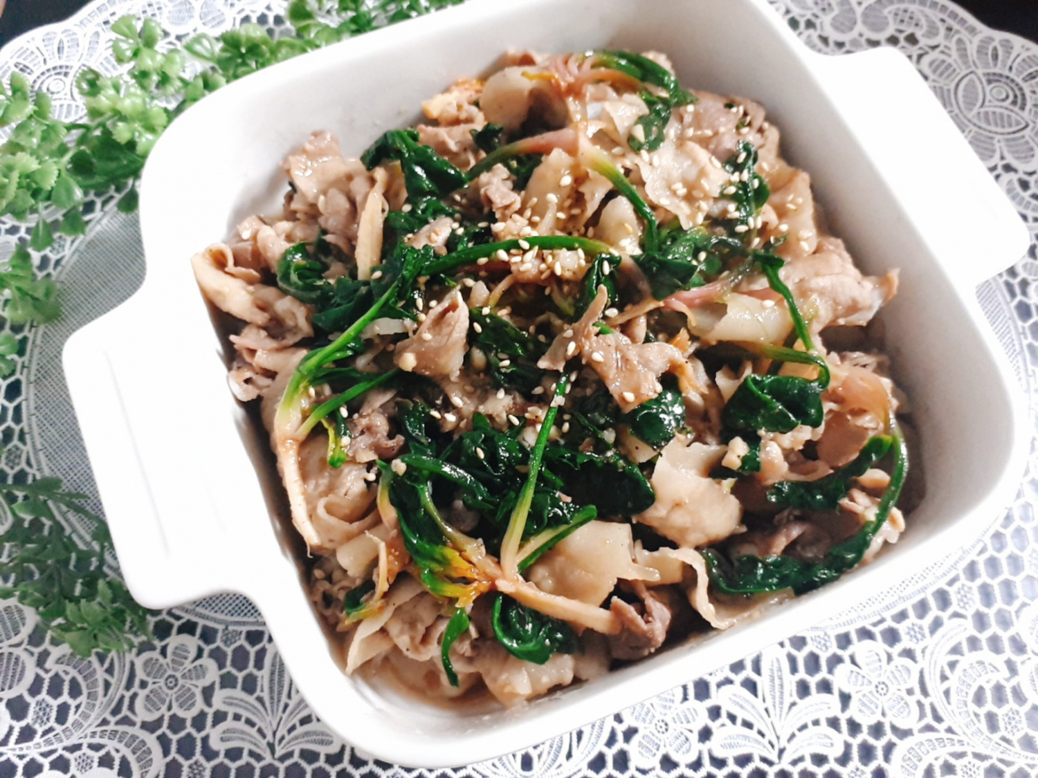 Un salteado rápido y delicioso que presenta espinacas frescas de temporada (como espinacas de isla o de campo) y panceta de cerdo llena de sabor. Este plato ofrece un delicioso equilibrio dulce y salado que se convertirá rápidamente en un favorito de la familia, perfecto para loncheras o como una comida rápida entre semana.