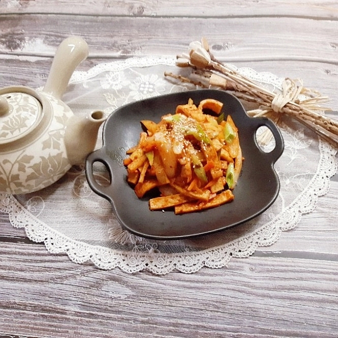 Salteado de Pastel de Pescado con Gochujang Picante y Dulce