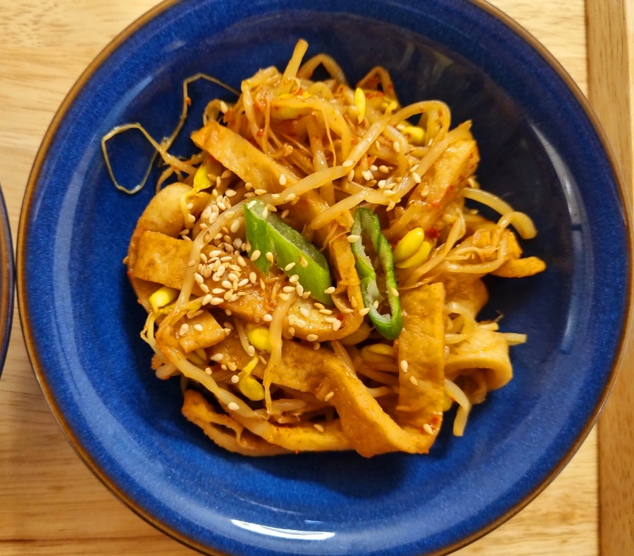 ¡Dos Guarniciones en Una! Salteado de Pastel de Pescado y Brotes de Soja (Versión Suave y Versión Picante)