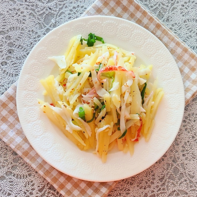 Salteado de Patatas Ralladas con Surimi (Palitos de Cangrejo)
