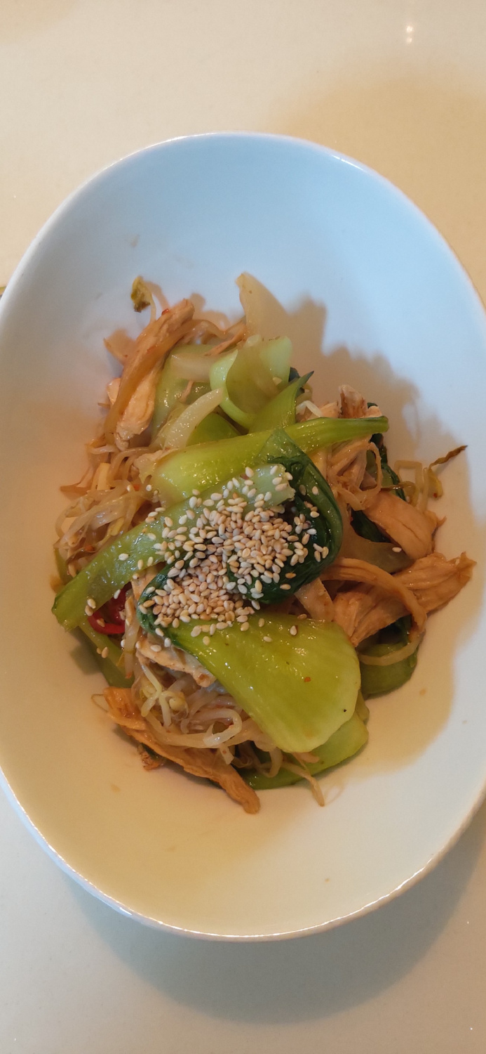 Los fines de semana, me gusta preparar comidas ricas en verduras. ¡Mis hijos sorprendentemente pidieron comer verduras en lugar de sus habituales platos de harina refinada y carne! Ha pasado un tiempo desde que les preparé platos de verduras, así que esta petición fue una grata sorpresa. ¡Preparemos un delicioso salteado repleto de nutrientes, con tierna pechuga de pollo, crujientes brotes de soja y aromático bok choy, perfecto para que toda la familia disfrute!
