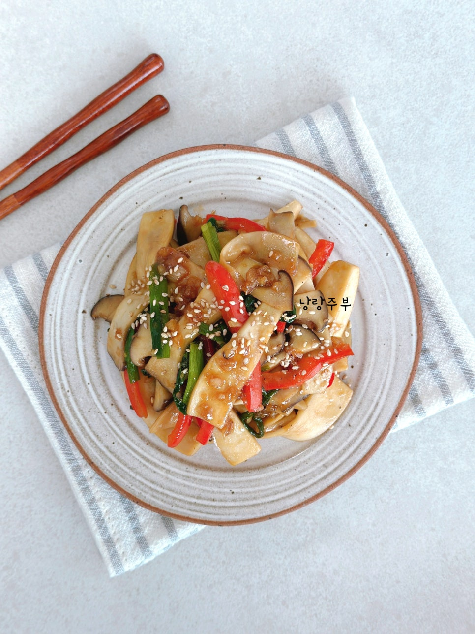 Les presentamos una receta súper fácil de salteado de setas ostra rey, perfecta para cuando necesitan una guarnición rápida. La textura tierna de las setas combinada con la profunda y sabrosa salsa de soja y salsa de ostras crea una fantástica combinación de sabores que es increíblemente adictiva. Añadir pimientos crujientes y cebolletas fragantes no solo las hace visualmente atractivas, sino que también realza su sabor y valor nutricional. Este salteado de setas es un plato delicioso que encantará a todos, desde niños hasta adultos.