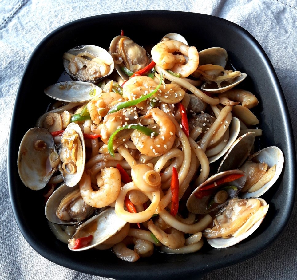 Udon Salteado con Almejas Frescas y un Toque Picante