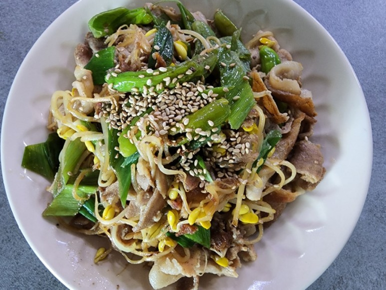 Salteado Súper Fácil de Panceta de Cerdo y Brotes de Soja (con Chile Encurtido)