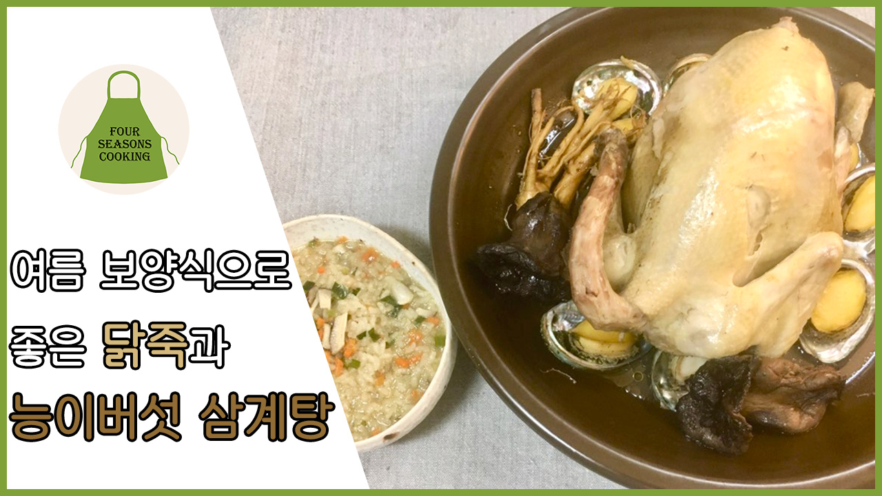 Preparando un Samgyetang especial con hongos Matsutake para el inicio del calor veraniego (Chobok). La fragancia de los hongos, la textura agradable de los abulones y la tierna carne de pollo se combinan para crear el plato reconstituyente definitivo, ideal para recuperar la energía perdida por el calor. Disfrute de esta magnífica comida en casa.