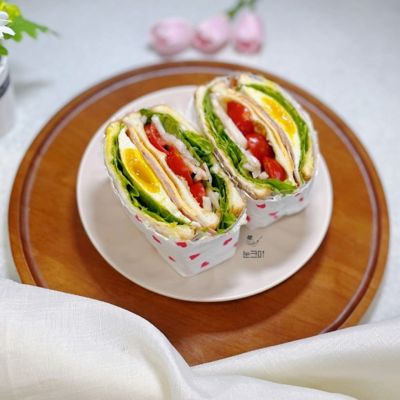 Lava las hojas de lechuga y sumérgelas en agua por un corto tiempo. Luego, córtalas al tamaño de tus rebanadas de pan. Sécalas suavemente con papel de cocina para asegurarte de que permanezcan crujientes y no mojen el sándwich.